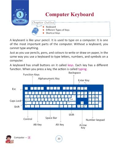A keyboard has small buttons on it called keys. Each key has a different