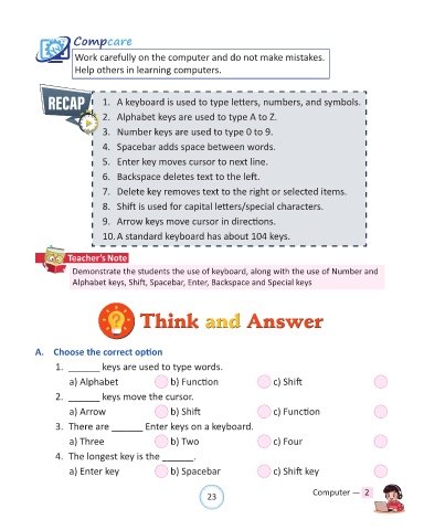 Demonstrate the students the use of keyboard, along with the use of Number and