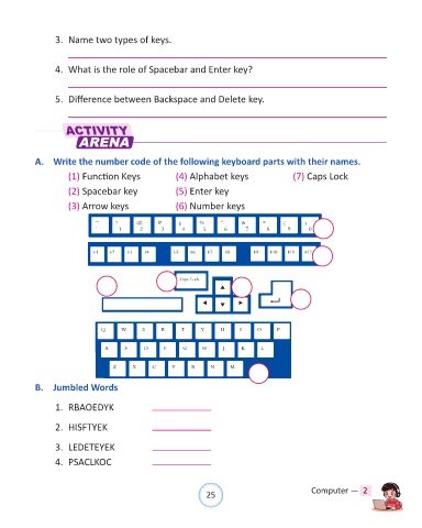 (1) Function Keys (4) Alphabet keys (7) Caps Lock
