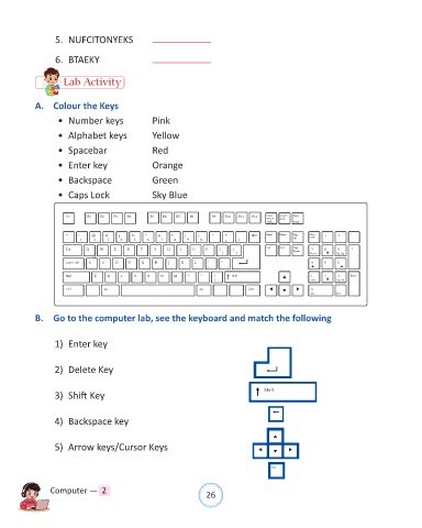 B. Go to the computer lab, see the keyboard and match the following