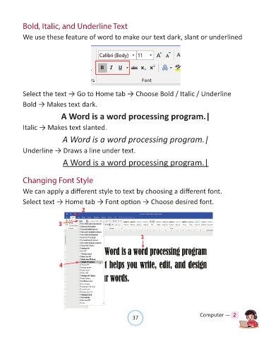 Select the text → Go to Home tab → Choose Bold / Italic / Underline