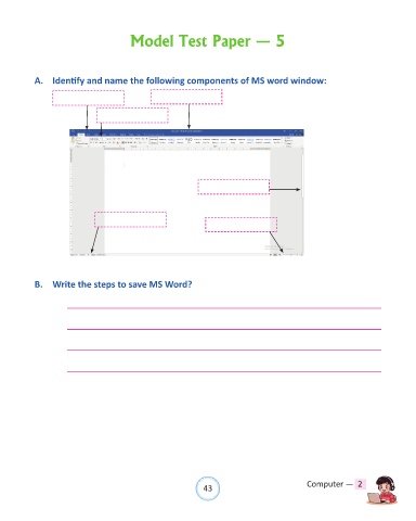 Model Test Paper — 5 A. Identify and name the following components of MS word window: B. Write the steps to save MS Word? 43 Computer — 2