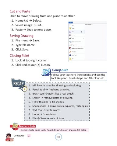 Demonstrate basic tools: Pencil, Brush, Eraser, Shapes, Fill Color.