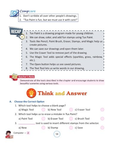 3. Tools like Pencil, Paint Brush, Eraser, Stamps, and Magic help us