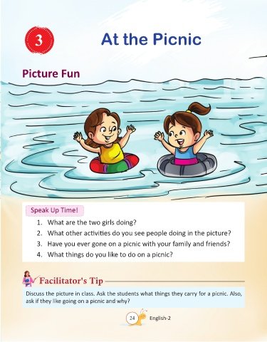 Discuss the picture in class. Ask the students what things they carry for a picnic. Also,