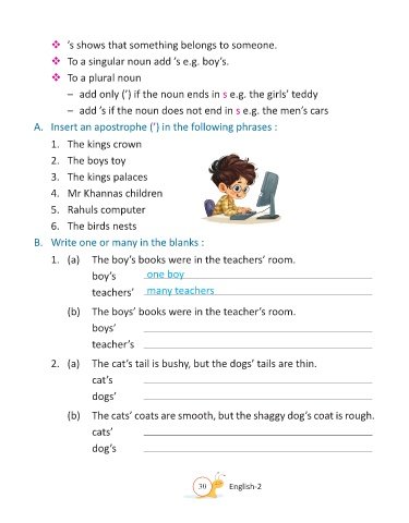 – add only (’) if the noun ends in s e.g. the girls’ teddy