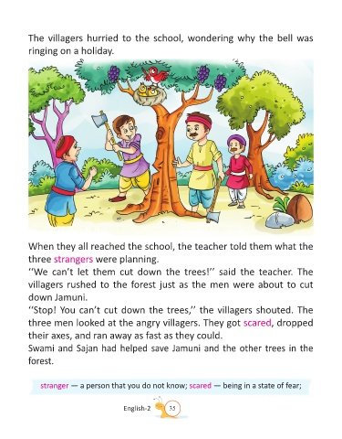 ‘‘Stop! You can’t cut down the trees,’’ the villagers shouted. The