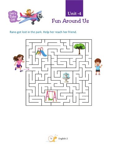 Let's Unit -4 Take Off Fun Around Us Rano got lost in the park. Help her reach her friend. 74 English-2