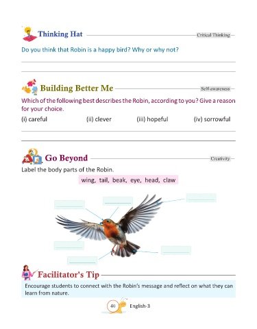 Encourage students to connect with the Robin’s message and reflect on what they can