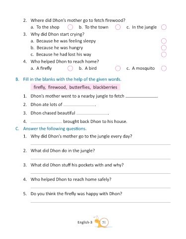 1. Dhon’s mother went to a nearby jungle to fetch .
