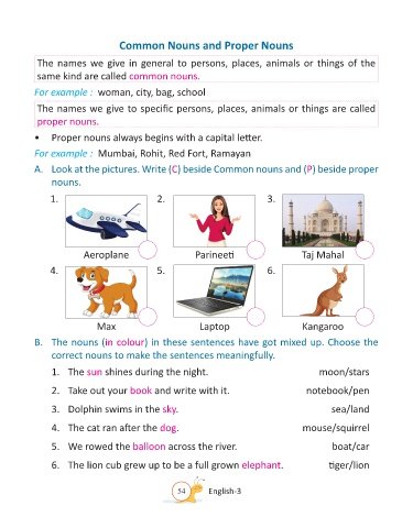 A. Look at the pictures. Write (C) beside Common nouns and (P) beside proper