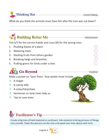 tree provide. Paste the pictures on the tree and speak two lines about each item.