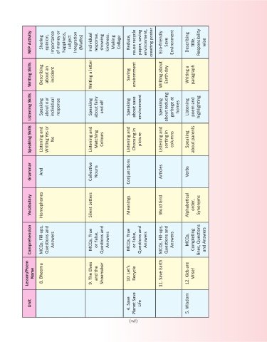 Lesson/Poem Name 8. Bheema 9. The Elves and the Shoemaker 10. Let’s Recycle 11. Save Earth 12. Kids are Wise!