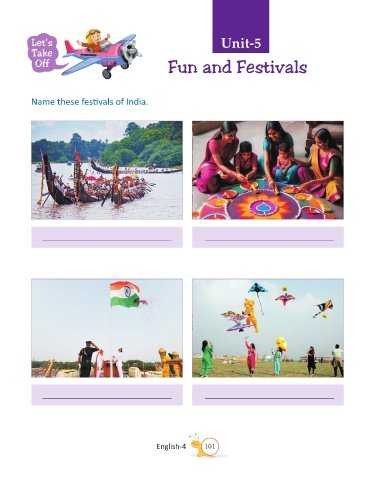 Let's Unit-5 Take Off Fun and Festivals Name these festivals of India. English-4 101