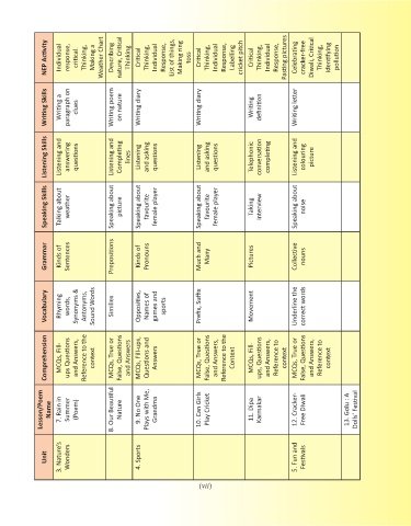NEP Activity Individual response, critical. Thinking, Making a Weather Chart Describing nature, Critical Thinking Critical Thinking, Individual Response, List of things, Making ring toss Critical Thinking, Individual Response, Labelling cricket pitch Critical Thinking, Individual Response, Pasting pictures Celebrating cracker-free Diwali, Critical Thinking, Identifying pollution