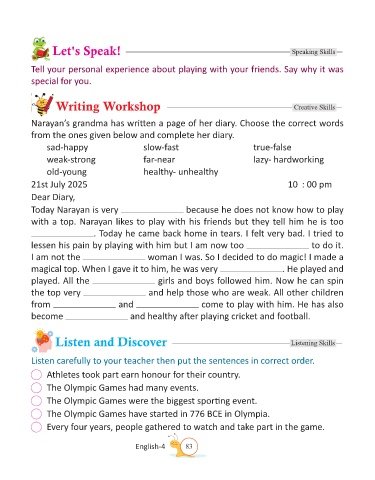 Narayan’s grandma has written a page of her diary. Choose the correct words