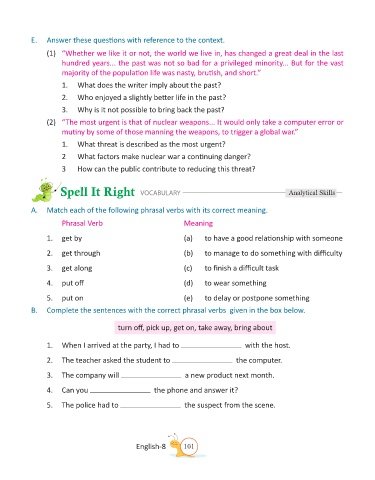 B. Complete the sentences with the correct phrasal verbs given in the box below.