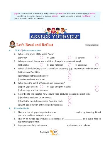 yoga — a practice that unites mind, body, and spirit; Sanskrit — an ancient indian language; holistic