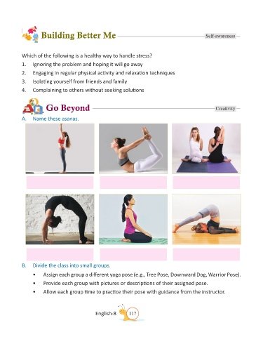 • Assign each group a different yoga pose (e.g., Tree Pose, Downward Dog, Warrior Pose).
