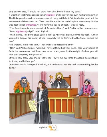 ‘‘No,’’ said Portia sternly, ‘‘you shall have nothing but your bond. Take your pound of