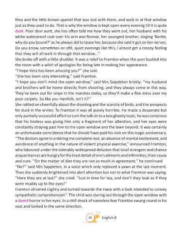 ‘‘I hope you don’t mind the open window,’’ said Mrs Sappleton briskly; ‘‘my husband