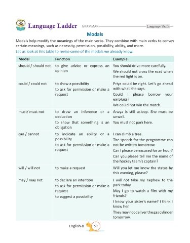 Let us look at this table to revise some of the modals we already know.