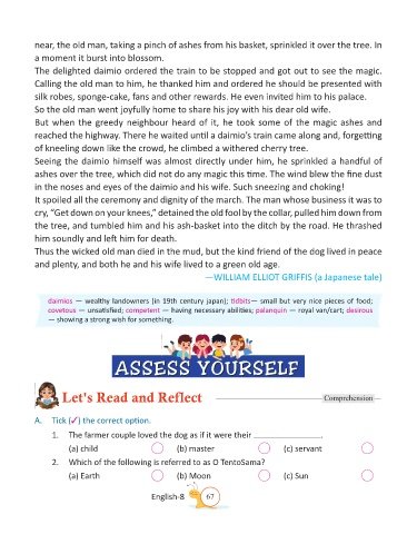 daimios — wealthy landowners (in 19th century japan); tidbits— small but very nice pieces of food;