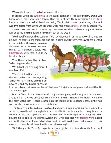 In spring, when the swallows and the storks came, the Tree asked them, ‘Don’t you