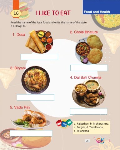 Read the name of the local food and write the name of the state