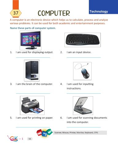 Scanner, Mouse, Printer, Monitor, Keyboard, CPU.