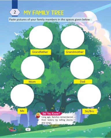 2 my family tree Paste pictures of your family members in the spaces given below : Grandfather Grandmother Mom Dad Me Sis/Bro Did You Know? Long ago, families remembered their history by telling stories and songs. — 1 6