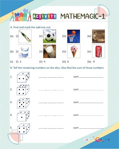 B. Tell the remaining numbers on the dice. Also find the sum of those numbers.