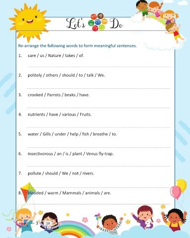 Re-arrange the following words to form meaningful sentences.