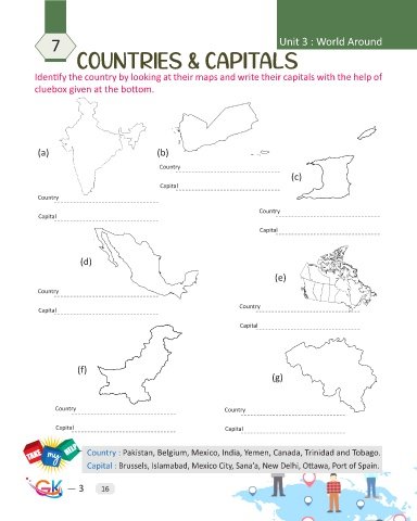 Identify the country by looking at their maps and write their capitals with the help of
