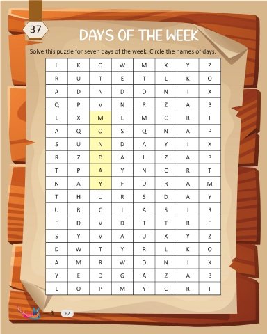 Solve this puzzle for seven days of the week. Circle the names of days.