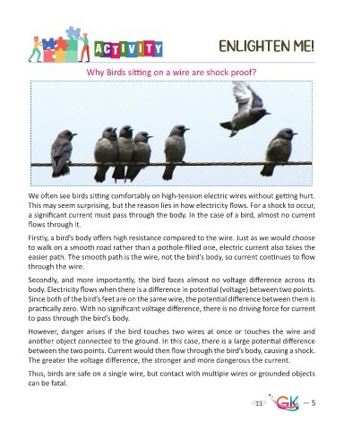 between the two points. Current would then flow through the bird’s body, causing a shock.