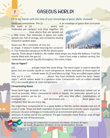 Fill in the blanks with the help of your knowledge of gases (Refer cluebox).