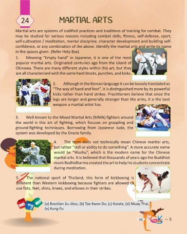 confidence, or any combination of the above. Identify the martial arts and write its name