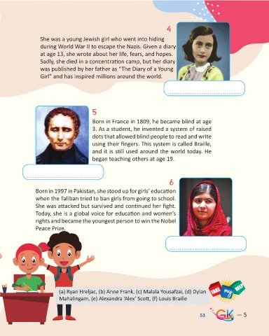 (a) Ryan Hreljac, (b) Anne Frank, (c) Malala Yousafzai, (d) Dylan