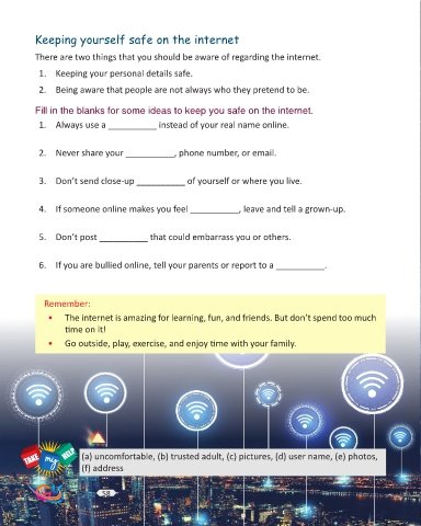 Fill in the blanks for some ideas to keep you safe on the internet.