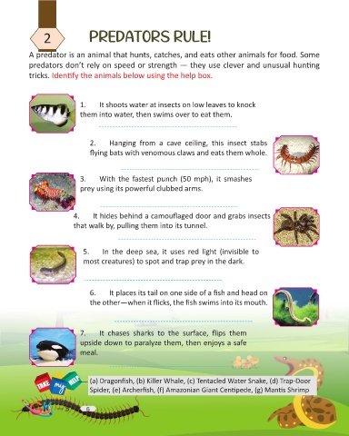 Spider, (e) Archerfish, (f) Amazonian Giant Centipede, (g) Mantis Shrimp