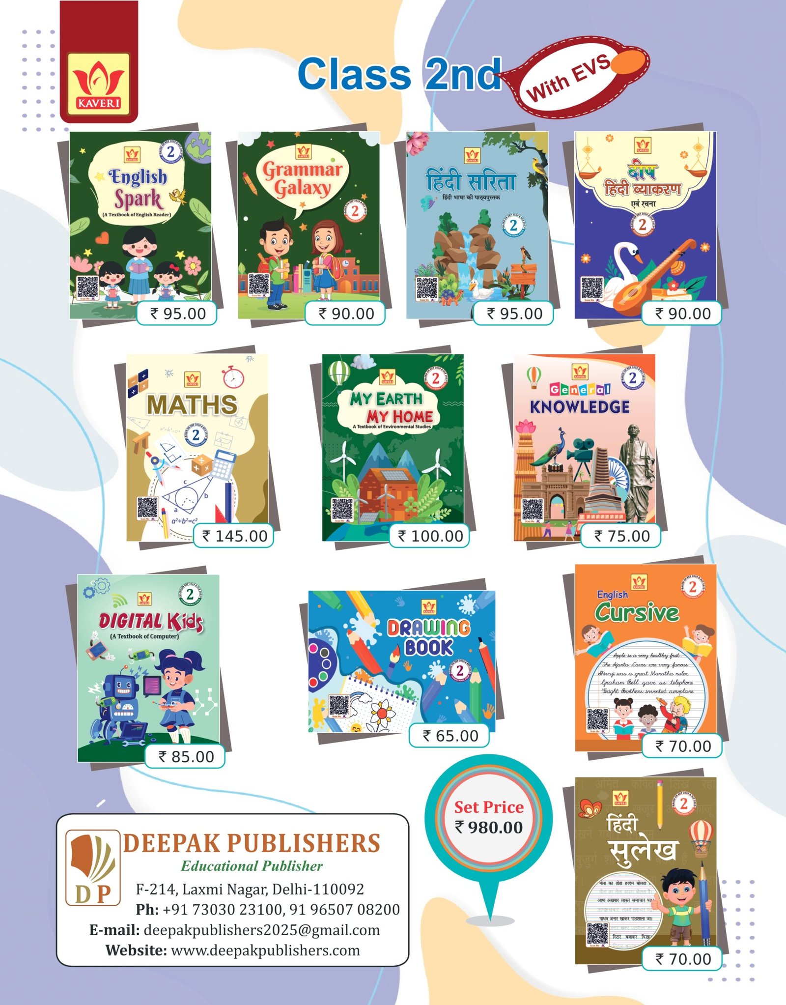 Order Now – Give Your Child a Strong Educational Start with the Kaveri Class 2nd (With EVS) Book Set from Deepak Publishers!