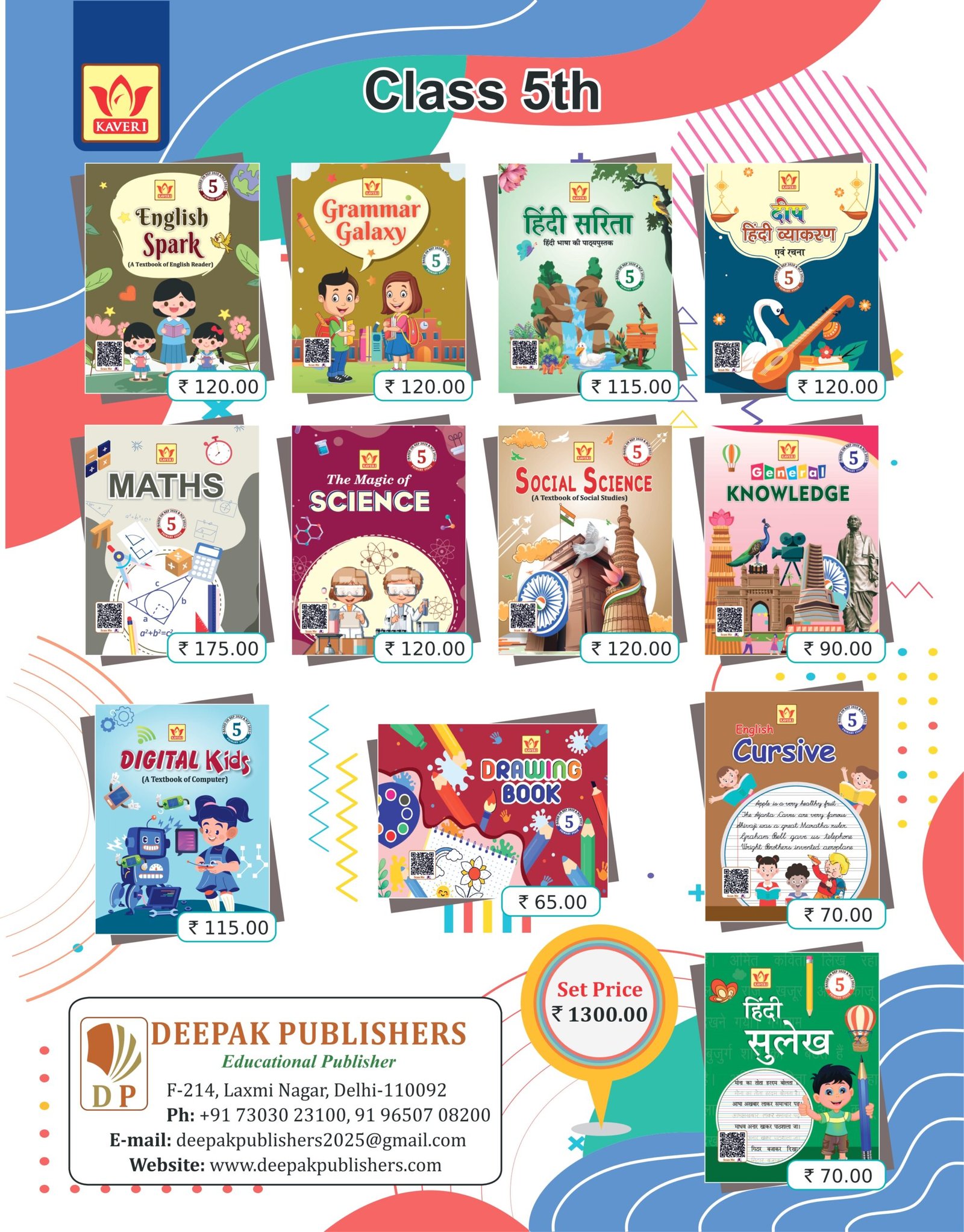 The Kaveri Class 5th Book Set by Deepak Publishers is carefully designed to help students strengthen their academic foundation with clear explanations, engaging activities, and colourful illustrations. Each book makes concepts easier to understand and encourages confidence, curiosity, and consistent learning.
